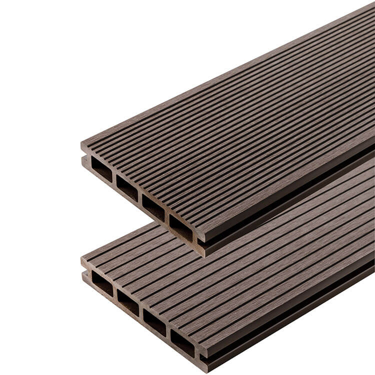 All EcoTravers composite decking boards are double-sided, so they can be installed according to preference. Standard decking boards have fine grooves on one side and wide grooves on the other. 3D boards have a wood-grain pattern on one side and are grooved on the other. Premium boards have a wood-grain pattern on both sides and are dual-colored.