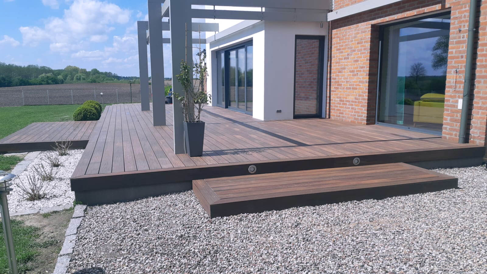 Watch the video by Mario Budowlaniec for instructions on how to install a terrace using our composite decking boards – exactly the one shown in the photos above.