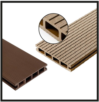 Premium and 3D composite decking boards feature circular chambers. This design allows the composite of wood flour and high-density polyethylene to cover a larger surface area, making the boards more durable. Although the construction of these boards differs from that of Standard decking boards, it is equally robust.
