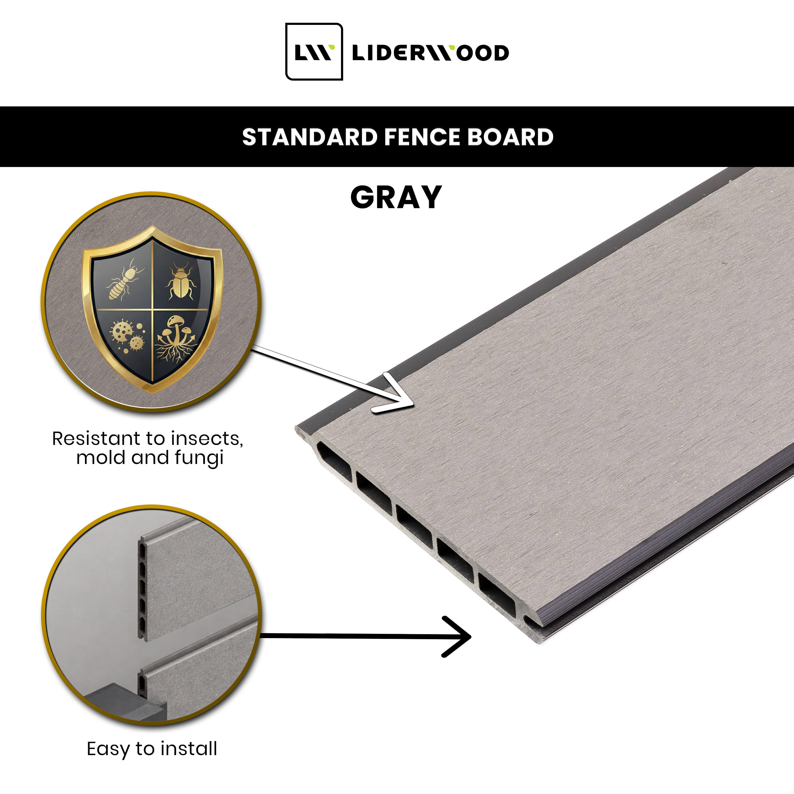Composite Fence Board Standard Gray 162 x 20 mm - 1,8 m
