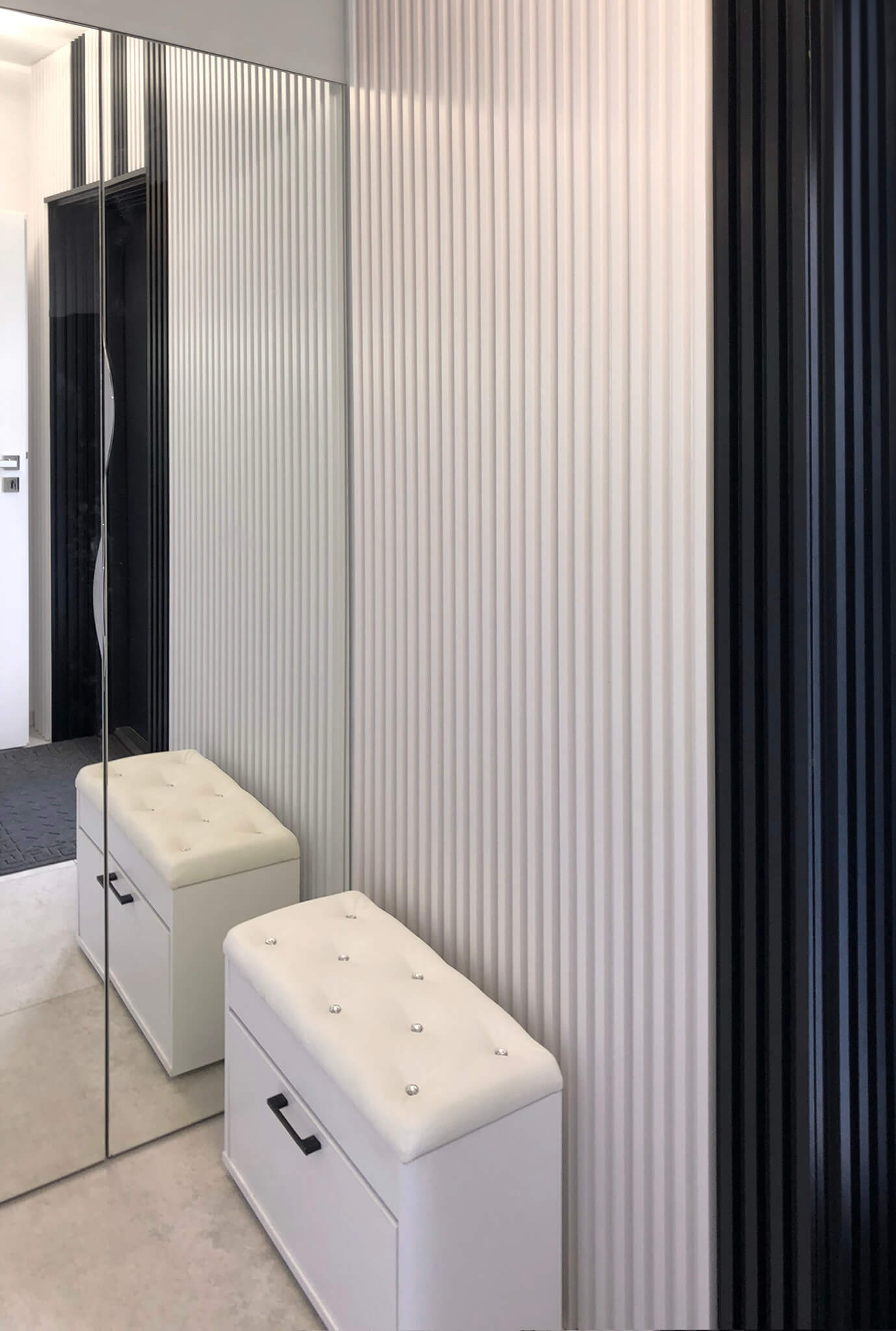 Slats are vertical strips usually spaced evenly apart. Traditional models can be separated, making their installation laborious, complicated, and time-consuming. Achieving uniform slat distribution can be particularly challenging. In response to these challenges, we offer ready-made slatted wall panels, significantly simplifying and accelerating installation, guaranteeing an aesthetic and symmetrical appearance. With a wide range of colors and textures, everyone will find the perfect solution. In recent years, slats have gained popularity as one of the most frequently chosen wall finishing methods. Designers are increasingly turning to slats, appreciating their versatility in both private and public spaces, such as offices or restaurants.