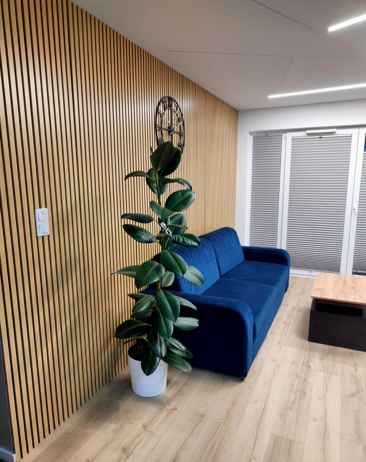 If you are looking to improve interior acoustics, our felt acoustic slats are an excellent choice. Thanks to their construction, slats effectively disperse sound, minimizing echo and improving the acoustic quality of the interior. Made from sound-absorbing materials such as felt, slats absorb sound waves, reducing noise and creating a more pleasant atmosphere. They significantly improve comfort in the room. Such solutions are particularly beneficial in rooms requiring good acoustics, such as offices, conference rooms, restaurants, or home recording studios.