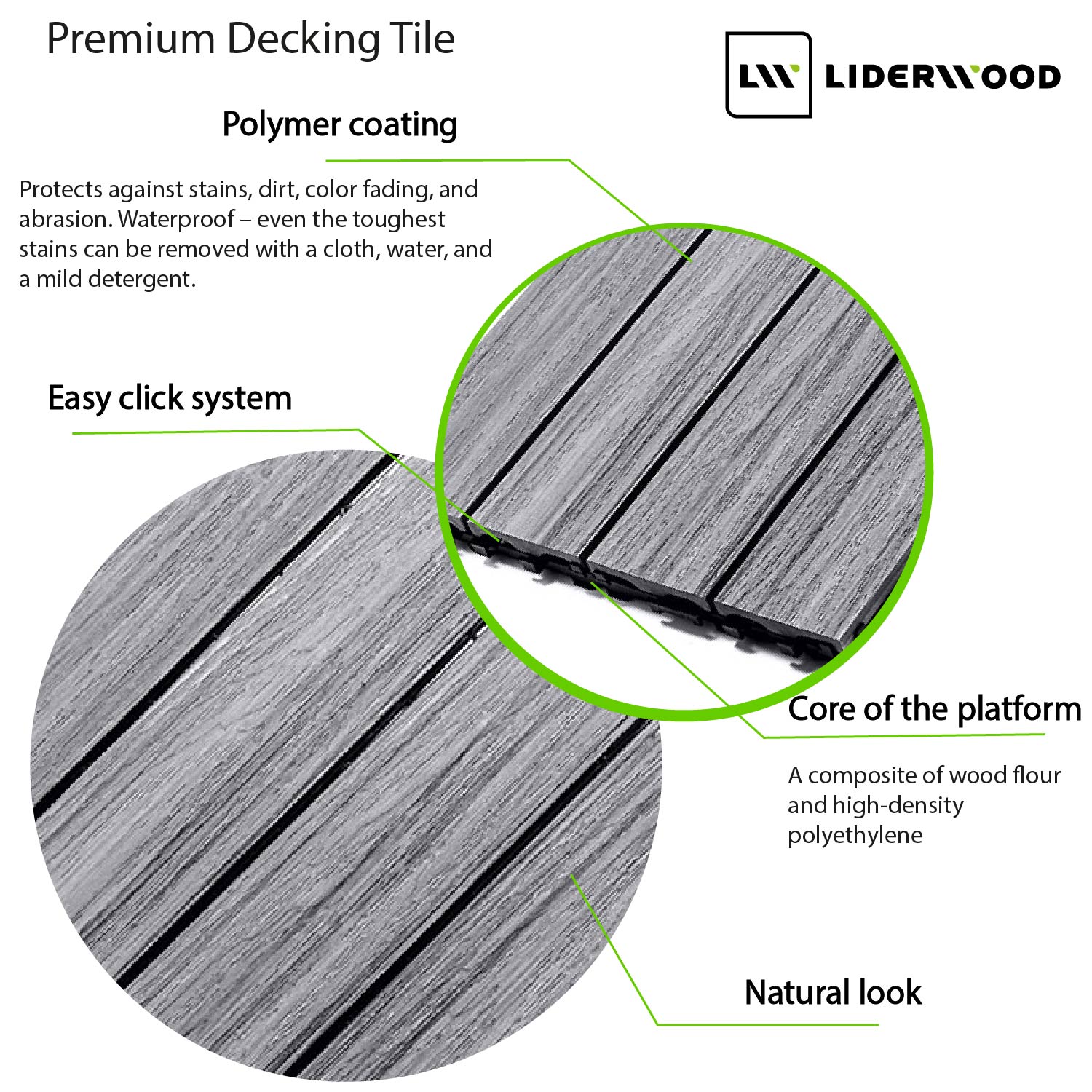 Premium Composite Decking Tile Gray 30 x 30 x 2,5 cm