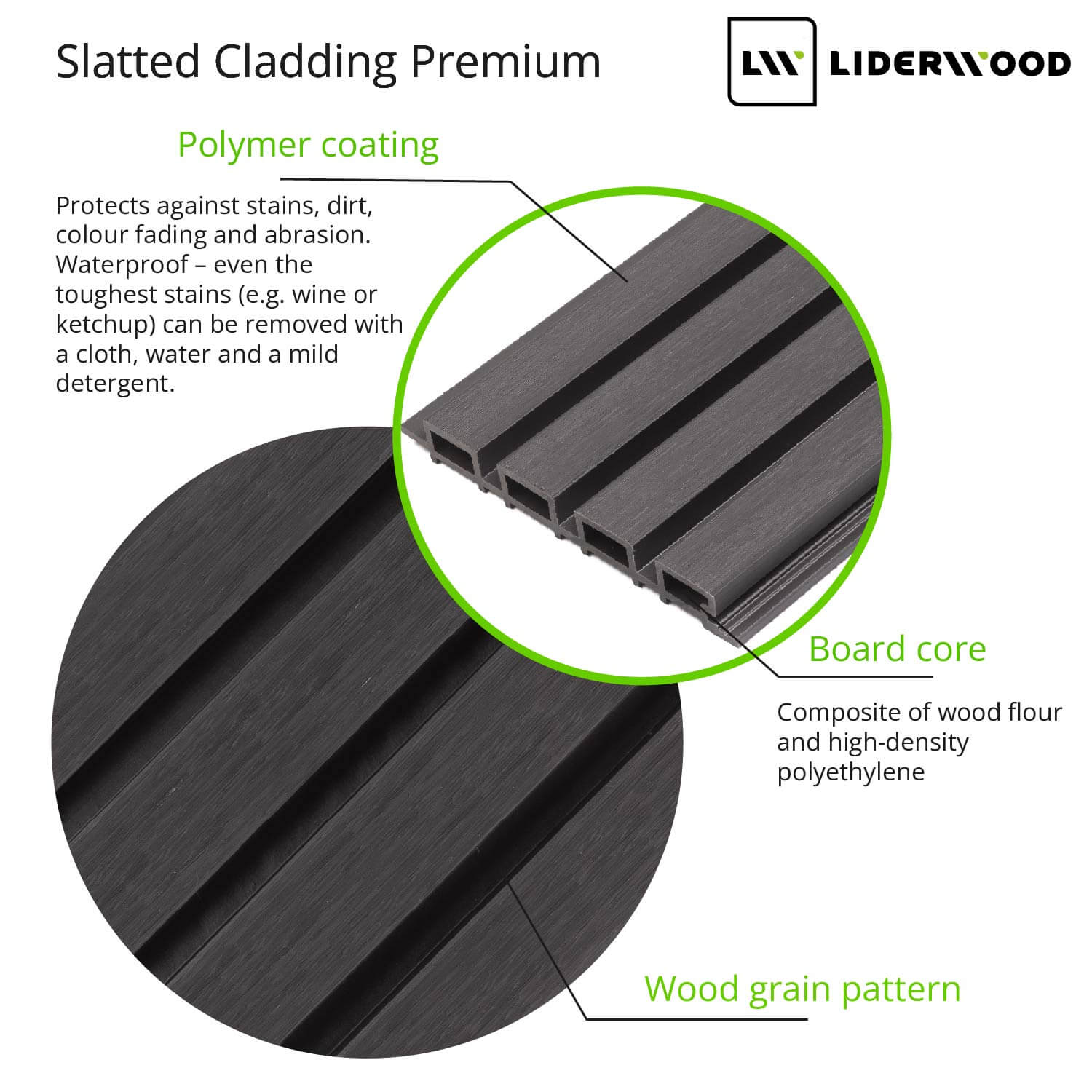 Premium Slatted Cladding Board – Graphite