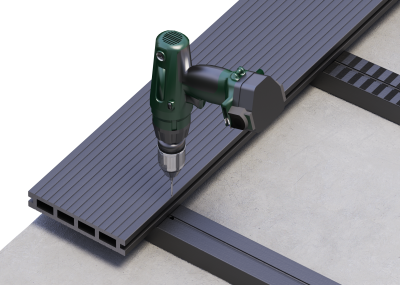 The clips are fixed into the profiled groove of the board and then screwed into the joist. They provide a solid and uniform connection with no visible fasteners. This ensures a clean deck appearance and the proper spacing between boards.