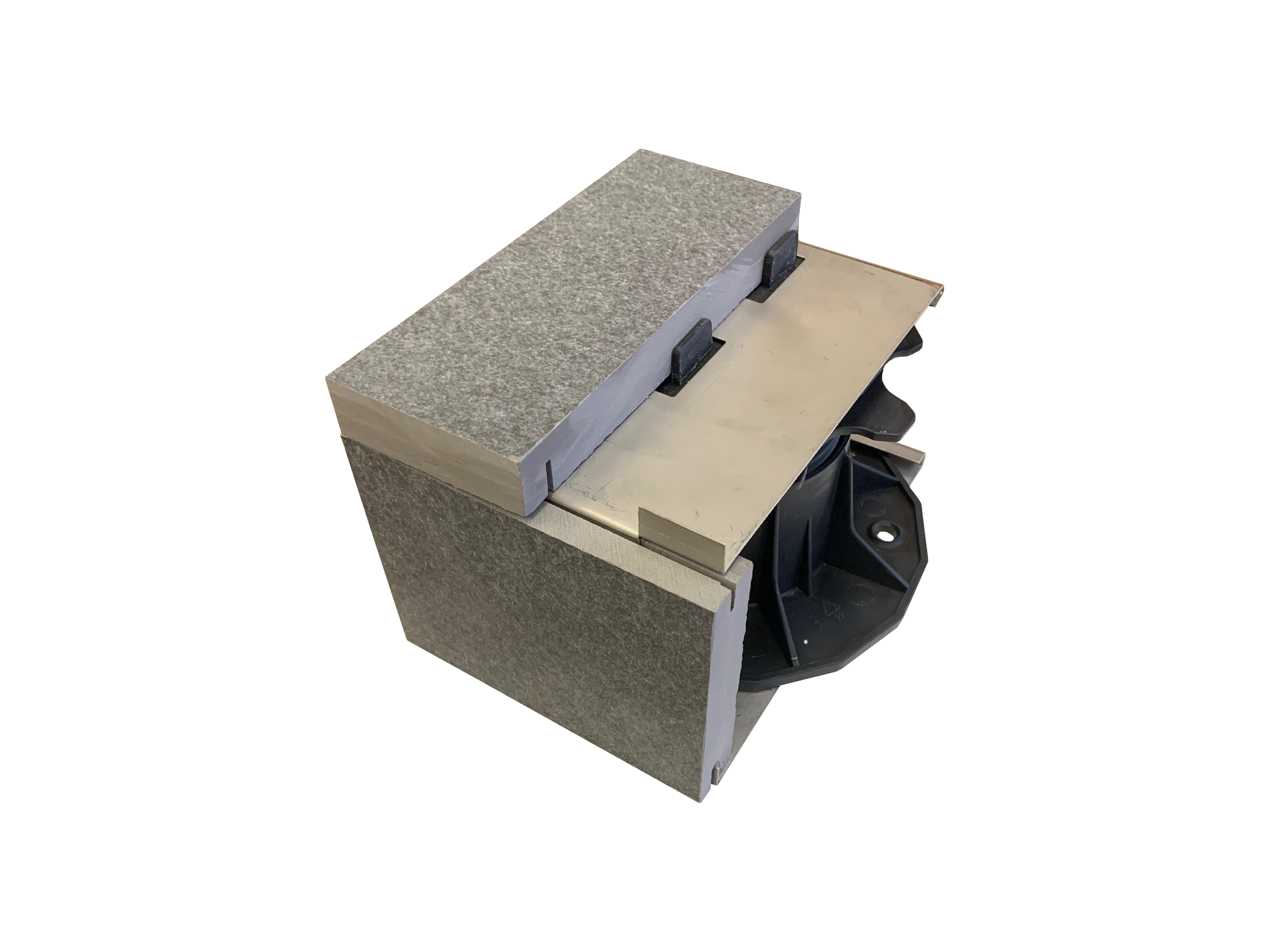 The pedestals are made of reinforced polypropylene (PP), making them resistant to mechanical factors like impacts and cracks. The material is 100% recyclable.